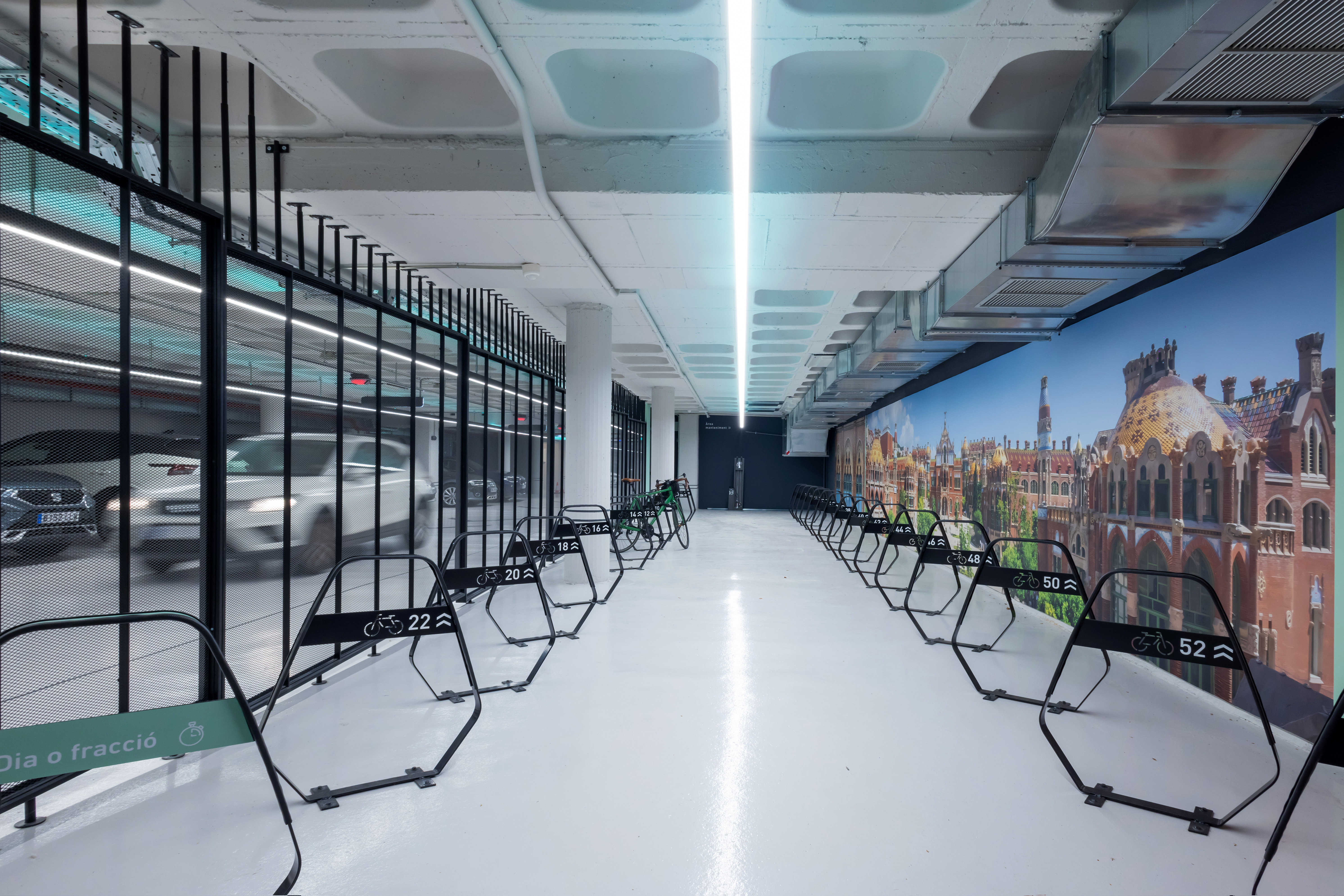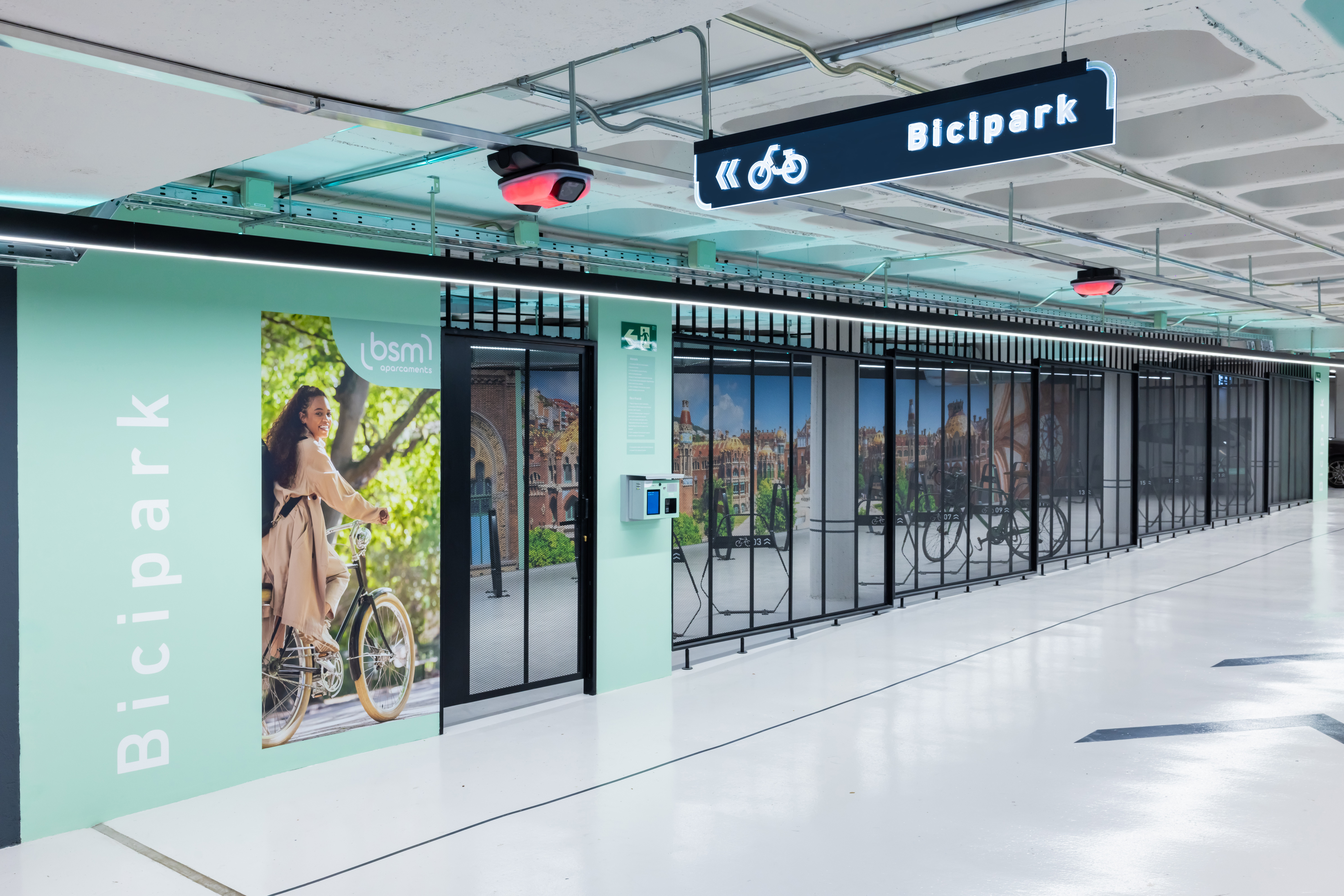 El nou model d’aparcaments de BSM posa en el centre la mobilitat sostenible. Per això, l’aparcament BSM Avinguda Gaudí suma 10 nous punts de recàrrega d’Endolla Barcelona, arribant als 18 –13 són per a cotxe i els altres 5, per a moto– i incorpora un Bicipark de 56 places que s’afegeix als altres 10 espais segurs per a bicicletes amb els que ja comptava la Xarxa d’Aparcaments BSM.